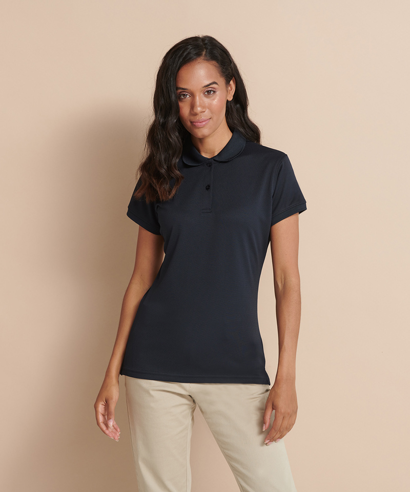 Damen-Poloshirt mit Feuchtigkeitsregulierung CoolPlus®. Mikropiqué. Figurbetonte Passform. Flacher Strickkragen. Umsäumte Ärmel. Seitenschlitze für mehr Bewegungsfreiheit. Feuchtigkeitsregulierendes Garn für länger anhaltende Performance. Ausgezeichnete Farbechtheit. Bügelleicht. Pflegeleicht.